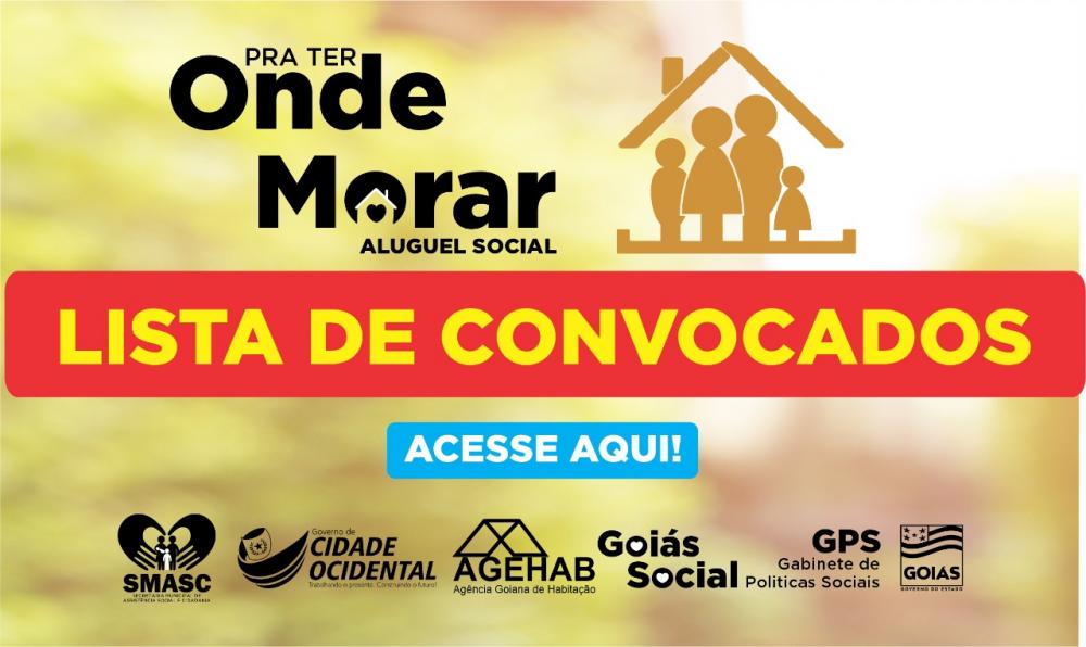 A Secretaria de Assistência Social, juntamente com a Agência Goiana de habitação (AGEHAB), divulga a lista das famílias convocadas para a entrega de documentação do PROGRAMA PARA TER ONDE MORAR - ALUGUEL SOCIAL em Cidade Ocidental – (VEJA A LISTA AQUI).