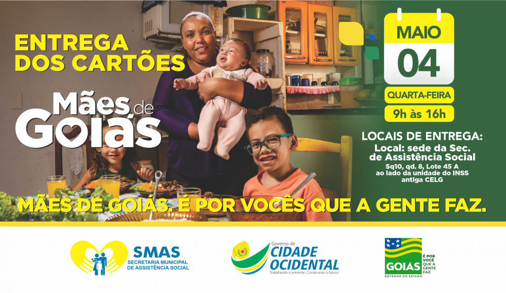 Nesta Quarta-feira (04/05) ocorrerá a 4° entrega dos cartões mães de Goiás.