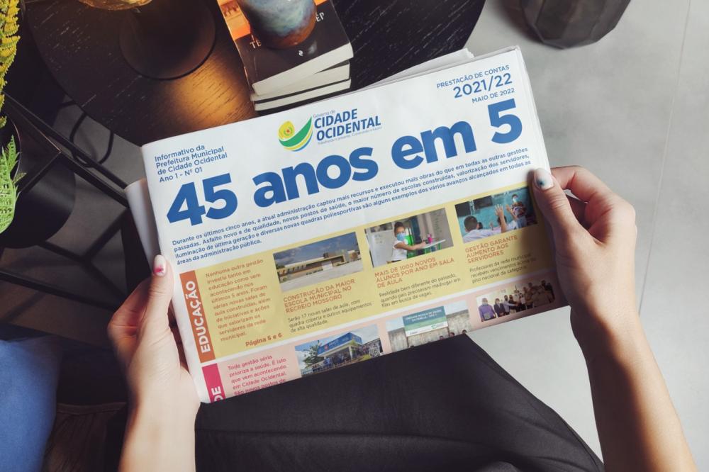 A Secretaria Municipal de Comunicação e Transparência da Prefeitura Municipal de Cidade Ocidental lançou a 1ª edição do Jornal 45 anos em 5, com título que descreve as melhorias que o município tem recebido nesses 5 anos de gestão do Prefeito Fábio Correa. Foram muitas mudanças durante esses cinco anos. A atual administração captou mais recursos e executou mais obras do que em todas as outras gestões passadas. Asfalto novo e de qualidade, novos postos de saúde, o maior número de escolas construídas, valorização dos servidores, iluminação de última geração e diversas novas quadras esportivas são alguns exemplos dos vários avanços alcançados em todas as áreas da administração pública.