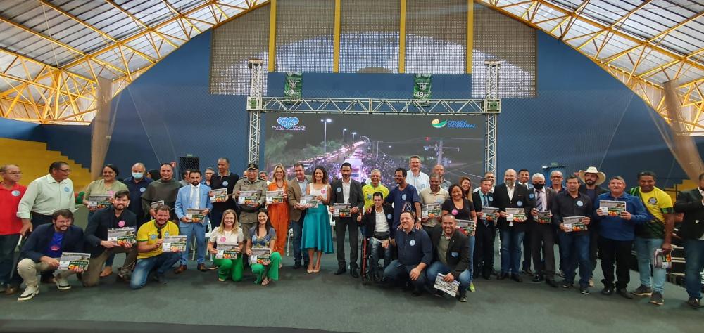 A 182ª edição do Momento Cívico, realizada na manhã dessa segunda-feira, 05/12, no ginásio de esportes Lindolfo Lima Neto, marcou um momento inédito na história de Cidade Ocidental. De iniciativa do prefeito Fábio Correa, a atual gestão entregou um exemplar do livro “Cidade Ocidental Educativo” aos atuais e ex-vereadores, bem como aos ex-prefeitos do município.