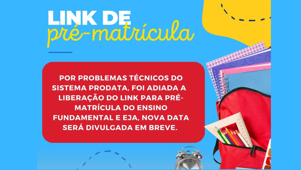 A Secretaria Municipal de Educação e Cultura informa que ocorreu um erro no banco de dados do Sistema Prodata que realiza o processo de Chamada Pública para o preenchimento de vagas do Ensino Fundamental e EJA.