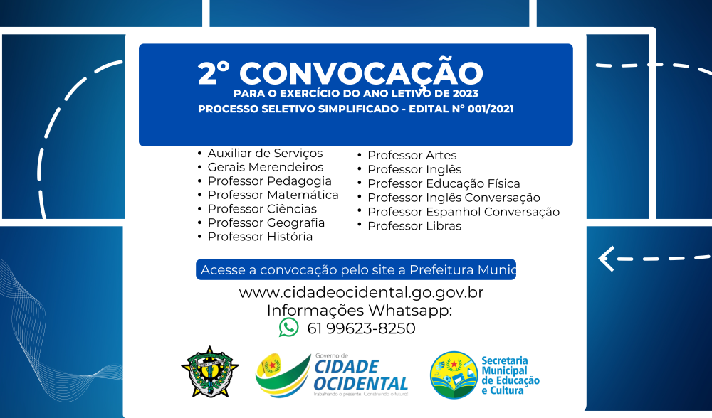 2º CONVOCAÇÃO DE SERVIDORES TEMPORÁRIOS PARA O EXERCÍCIO DO ANO LETIVO DE 2023 - PROCESSO SELETIVO EDITAL 001-2021.