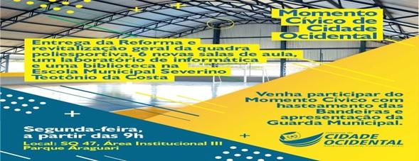 ENTREGA DA REFORMA E REVITALIZAÇÃO GERAL DA QUADRA POLISPORTIVA; 06 NOVAS SALAS DE AULA; 01 LABORATÓRIO DE INFORMÁTICA E UMA BIBLIOTECA DA ESCOLA MUNICIPAL SEVERINO TEOTÔNIO DA COSTA