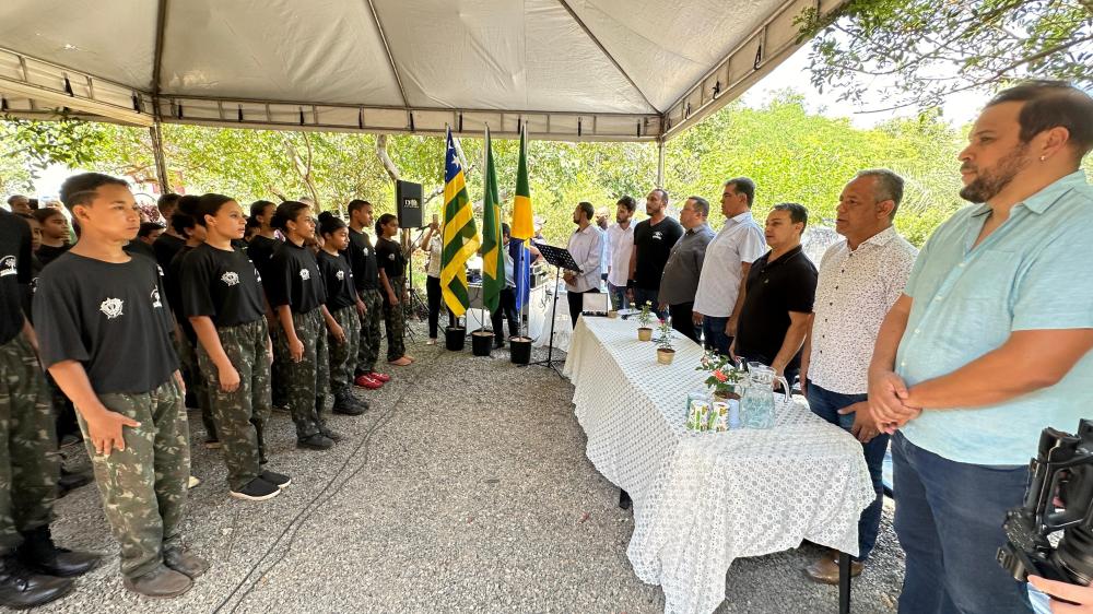 Com o clima de comemoração, a prefeitura realizou o Momento Cívico desta segunda-feira (13), na Escola da Terra para celebrar os 5 anos da instituição.