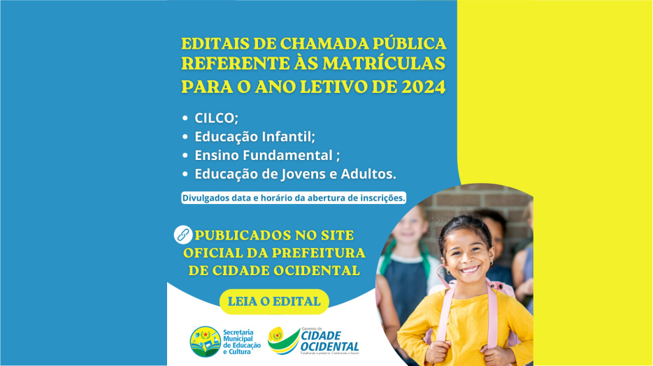 Divulgados os editais de chamada pública referentes às matrículas para o ano letivo de 2024.