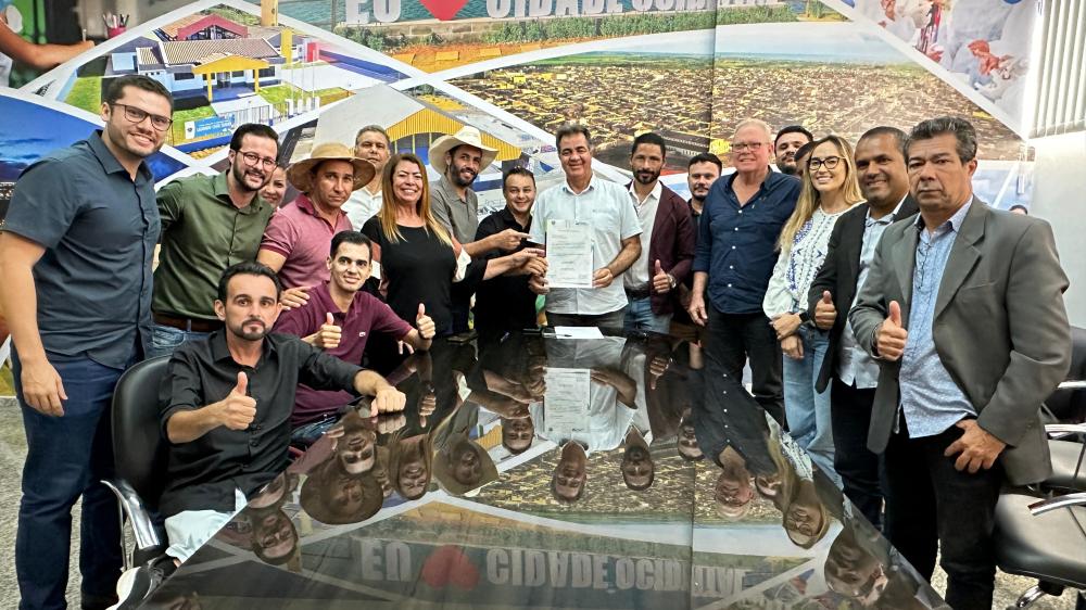A assinatura da homologação foi realizada pelos Vereadores, representando o Poder Legislativo, pelos Secretários Municipais, além do Prefeito, Fábio Correa e do vice-prefeito, Lula Viana.
