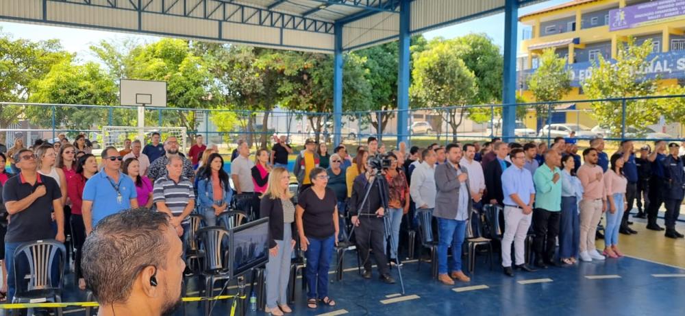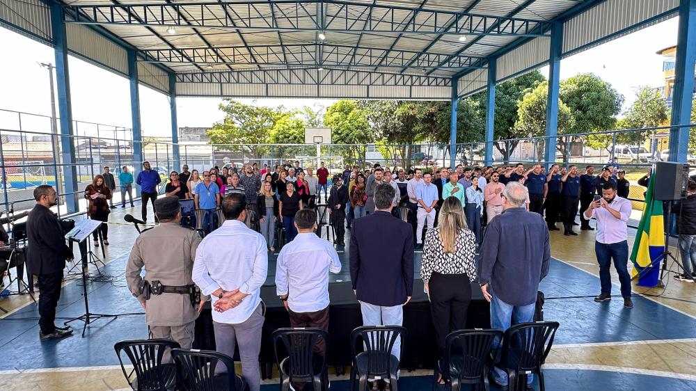 Na manhã desta segunda-feira, 10, ocorreu mais um Momento Cívico na Cidade Ocidental, para apresentar as ações do Governo Municipal na última semana. O momento, que é uma oportunidade de reafirmar valores como ética, respeito e cidadania, reuniu representantes de diversos setores públicos que destacaram a importância de aprovar ações eficazes que contribuem para a evolução e segurança da cidade.