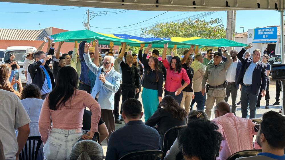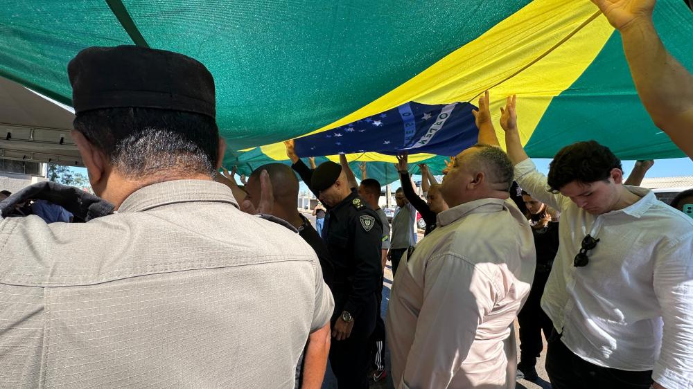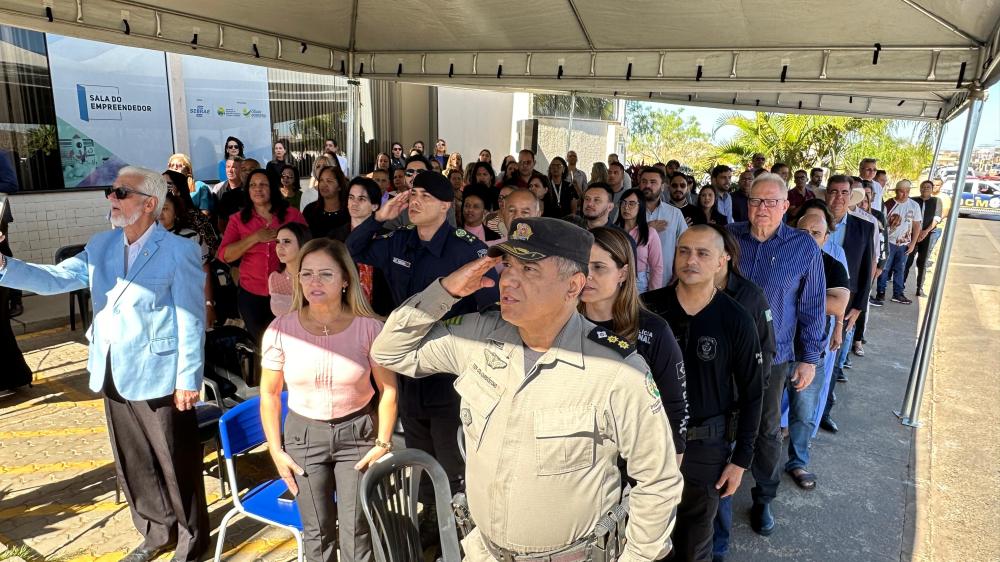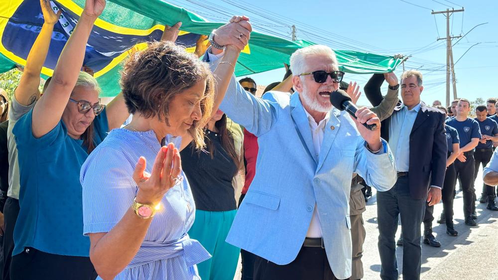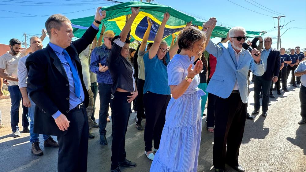 Uma nova segunda-feira e, com ela, mais um Momento Cívico. No encontro de hoje, dia 17, diversas autoridades e parlamentares se reuniram para apresentar as mudanças e decisões que aconteceram no decorrer da semana. O momento foi iniciado por um ato profético do pastor Ângelo, representante do Instituto Clama Brasil, que estabelecerá uma nova sede em Cidade Ocidental. No ato, o pastor convidou o prefeito, vereadores e todos os presentes para segurar e apoiar a bandeira do Brasil, como símbolo de devoção e obediência a Deus.