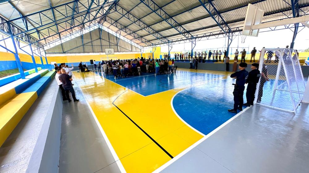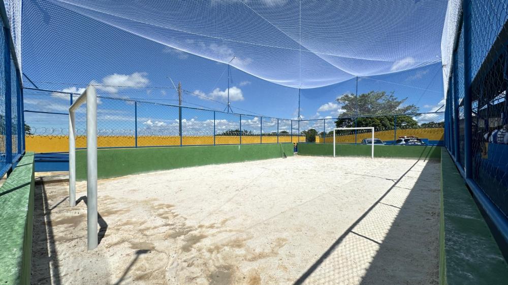 Com um investimento de R$ 508.000,00, a reforma da quadra poliesportiva incluiu melhorias significativas, como a construção de uma quadra de areia, a implantação de vestiários e um depósito, o reboco dos muros, a instalação de uma rampa de acessibilidade e a pintura completa da área.