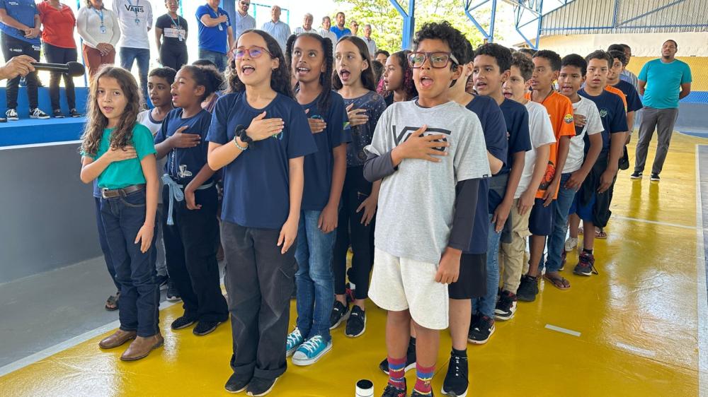 Quem também falou durante a cerimônia foi a chefe de Gabinete Maria de Jesus ‘’É uma alegria participar de momentos como este, que reforçam o compromisso da administração com a inclusão e o bem-estar da comunidade escolar. Essa quadra simboliza a parceria entre educação e esporte, elementos fundamentais para a formação de nossas crianças e jovens.”