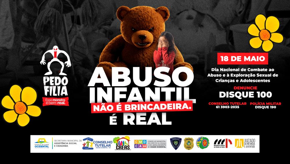 No próximo dia 18 de maio, celebra-se em todo o Brasil o Dia Nacional de Combate ao Abuso e à Exploração Sexual de Crianças e Adolescentes, uma data fundamental para reforçar a proteção à infância e garantir os direitos das crianças e adolescentes. Em Cidade Ocidental, o Conselho Tutelar, com o apoio da Prefeitura Municipal, está à frente de uma grande mobilização durante todo o mês de maio.