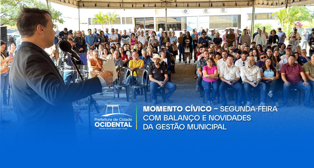O Momento Cívico, iniciativa inédita na região do Entorno, é realizado uma vez por mês pela Prefeitura e tem como finalidade apresentar publicamente o andamento das ações da gestão municipal.