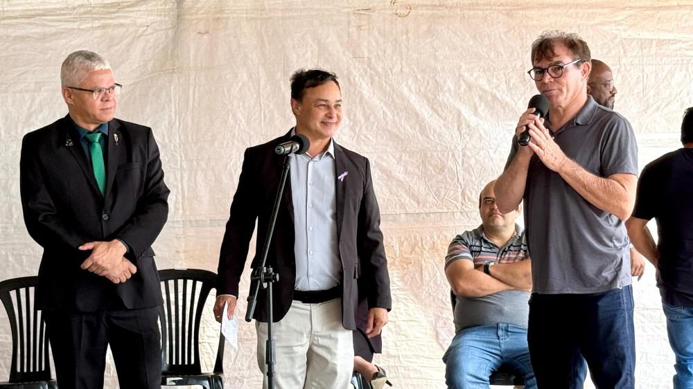 A convite do prefeito, o comandante do 33º Batalhão da Polícia Militar, major Alcântara, foi o primeiro a falar após o prefeito. Ele destacou a importância da retomada do banco de horas repassado pela prefeitura à corporação, medida que possibilitou a reativação de projetos relevantes como as patrulhas escolar, comercial e de condomínios. Mencionou também o Projeto Embarque Seguro, realizado em parceria com a Guarda Civil Municipal, e o reforço no policiamento ostensivo, iniciativas que têm proporcionado mais segurança à população por meio da atuação integrada entre Estado e Município.