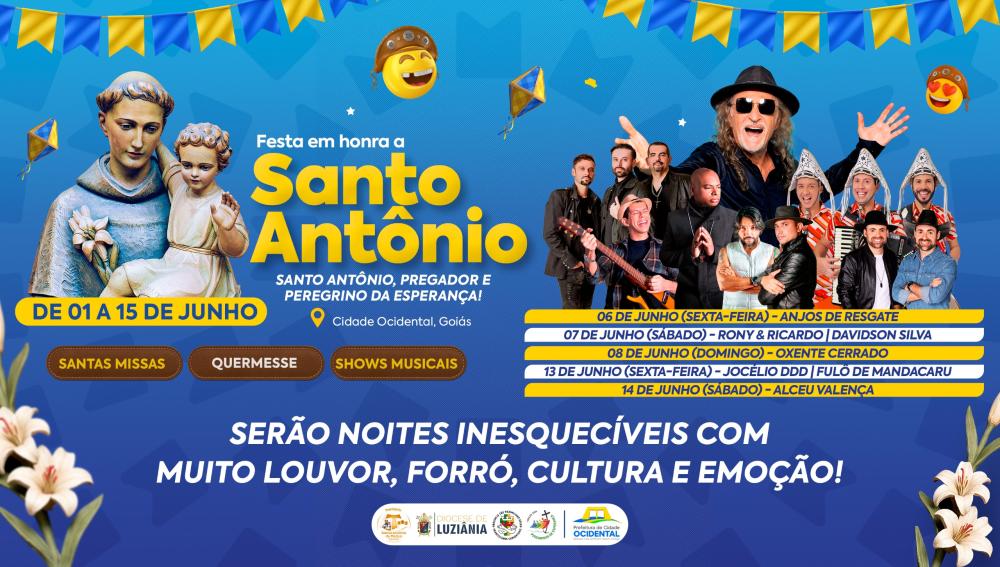 É tempo de fé, tradição e muita alegria! A Paróquia Santo Antônio juntamente com a prefeitura municipal convida toda a comunidade para celebrar conosco a Festa de Santo Antônio 2025. Serão dias de intensa espiritualidade, celebrações e momentos especiais com shows, apresentações culturais e a já tradicional programação festiva.