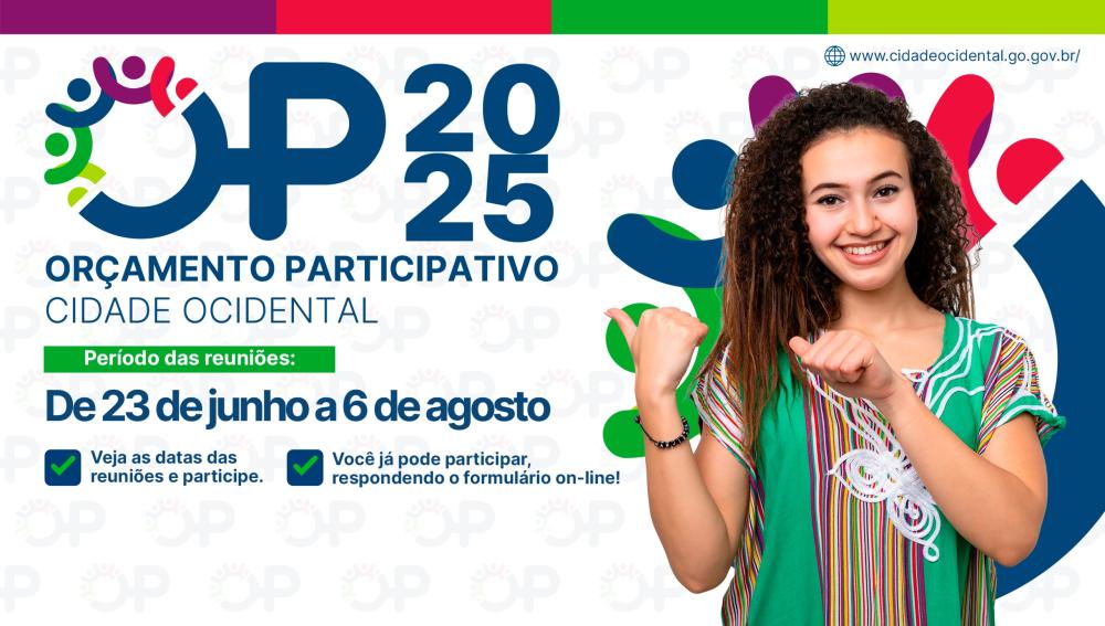 A Prefeitura de Cidade Ocidental dá início, no próximo dia 23 de junho, à edição 2025 do Orçamento Participativo (OP) — a primeira sob a gestão do prefeito Lulinha Viana. O projeto, que já se consolidou como uma ferramenta democrática de escuta e construção coletiva, contará com 11 encontros presenciais distribuídos por diferentes bairros e regiões da cidade, com encerramento previsto para o dia 6 de agosto.