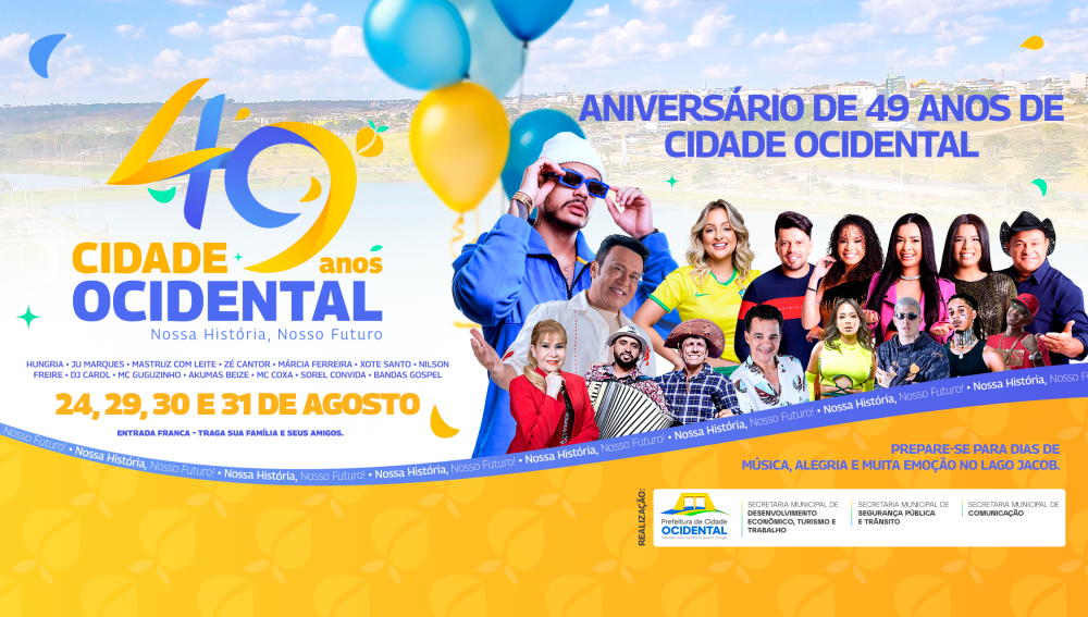 A data mais aguardada do ano está chegando: a comemoração do aniversário de Cidade Ocidental! Em 2025, a celebração promete ser ainda mais especial, com três dias de música, cultura e grandes encontros.