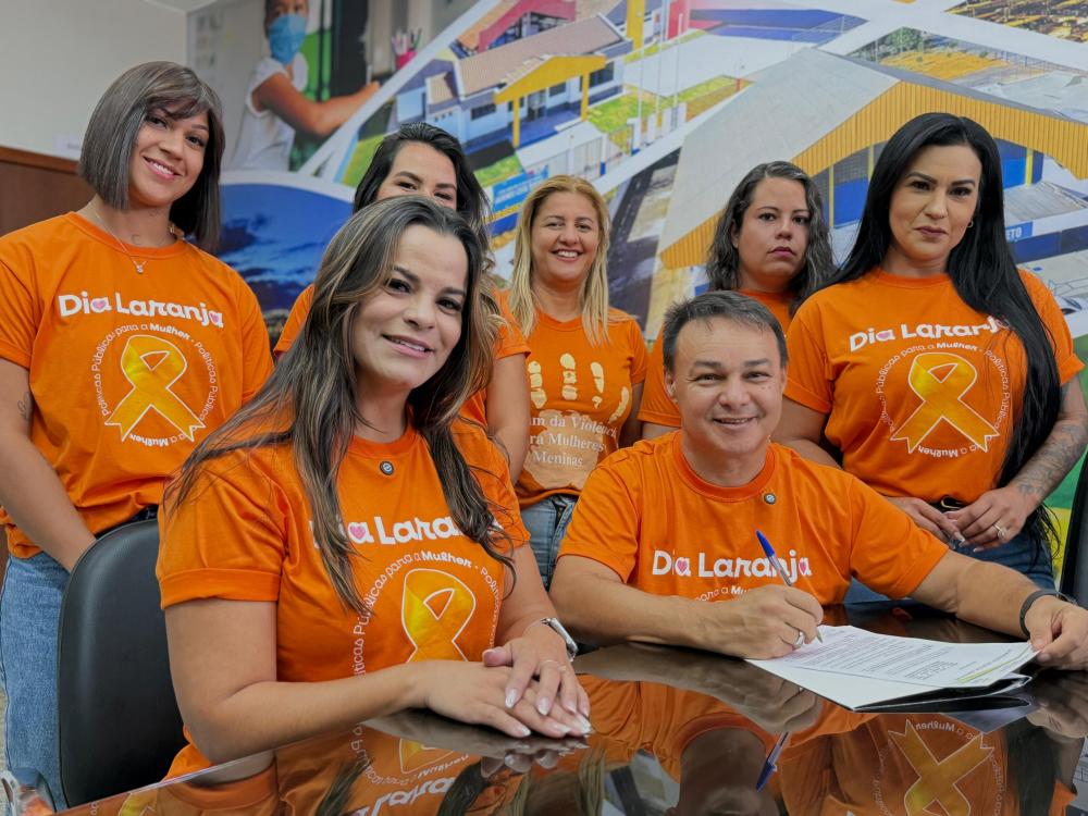 Na segunda-feira (25), o prefeito Lula Viana sancionou, acompanhado da secretária Municipal de Políticas Públicas para a Mulher, Fran Medeiros, a subsecretária Cilene Ramos, a Lei Municipal N° 1.510 que institui e inclui no calendário oficial de Cidade Ocidental o “Dia Laranja” pelo fim de todas as formas de violência contra meninas e mulheres.