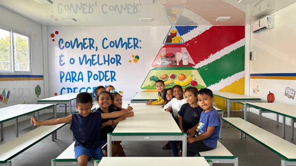 O novo refeitório tem capacidade para atender até 90 crianças por vez, garantindo um ambiente acolhedor, seguro e confortável na hora das refeições.