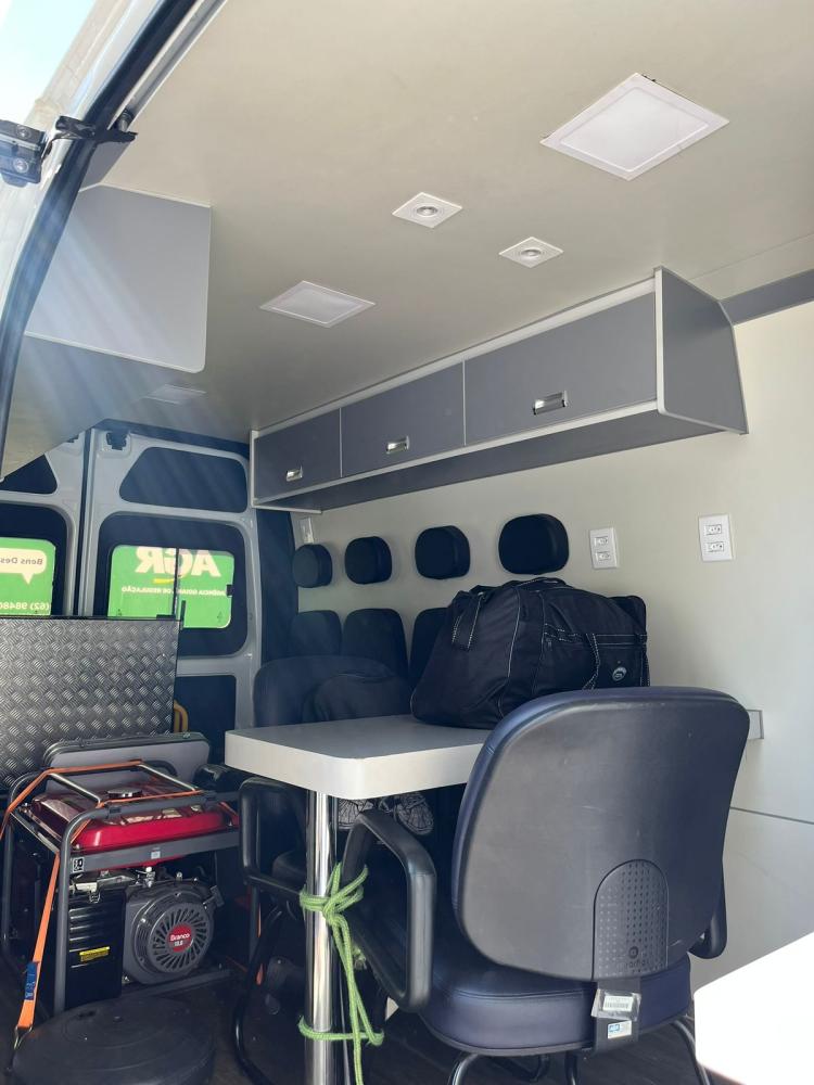 O projeto AGR Móvel leva os atendimentos a vários municípios do estado de Goiás. O veículo equipado com ar-condicionado, mesa, iluminação, internet e notebook para atender as pessoas.