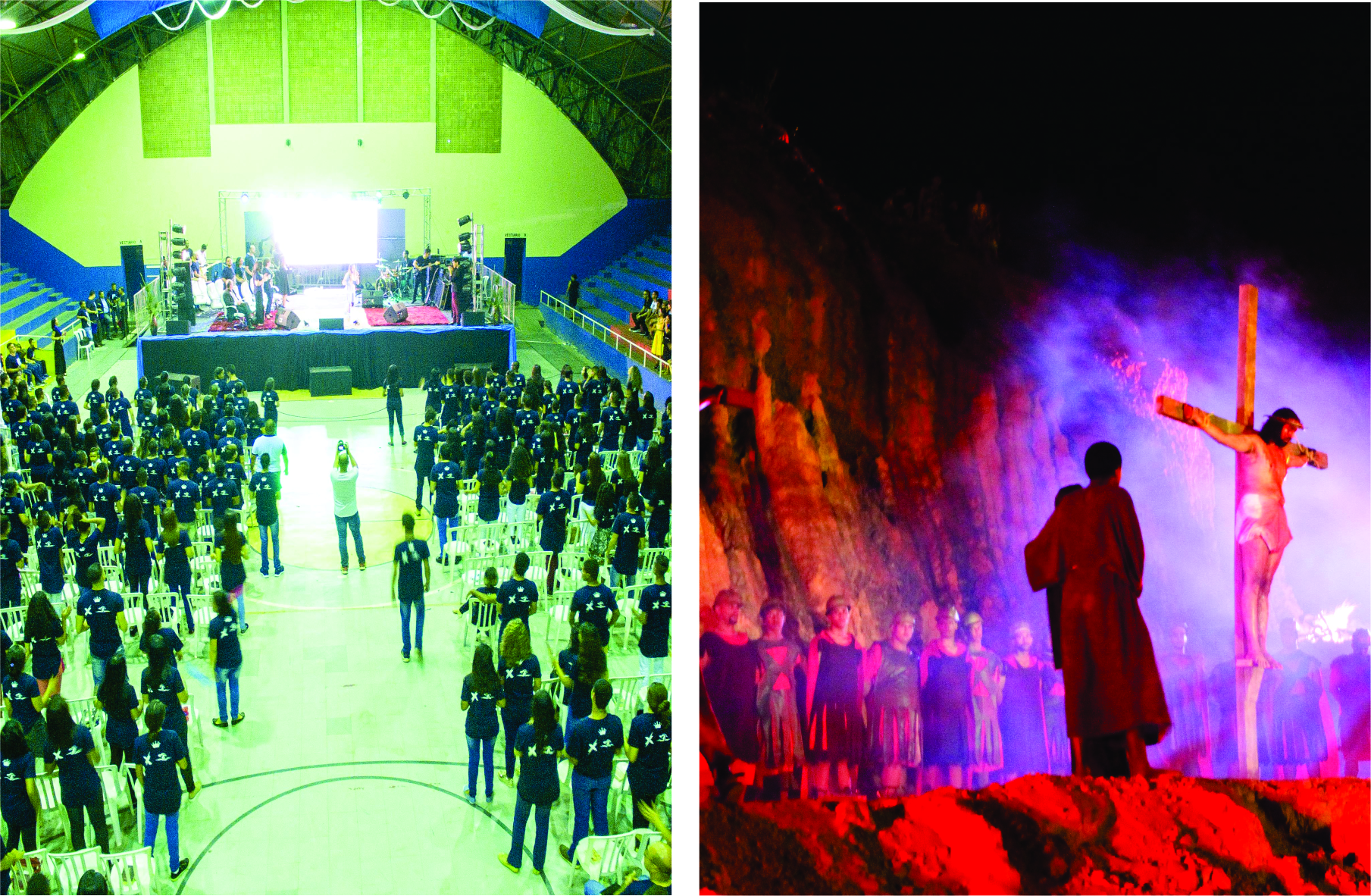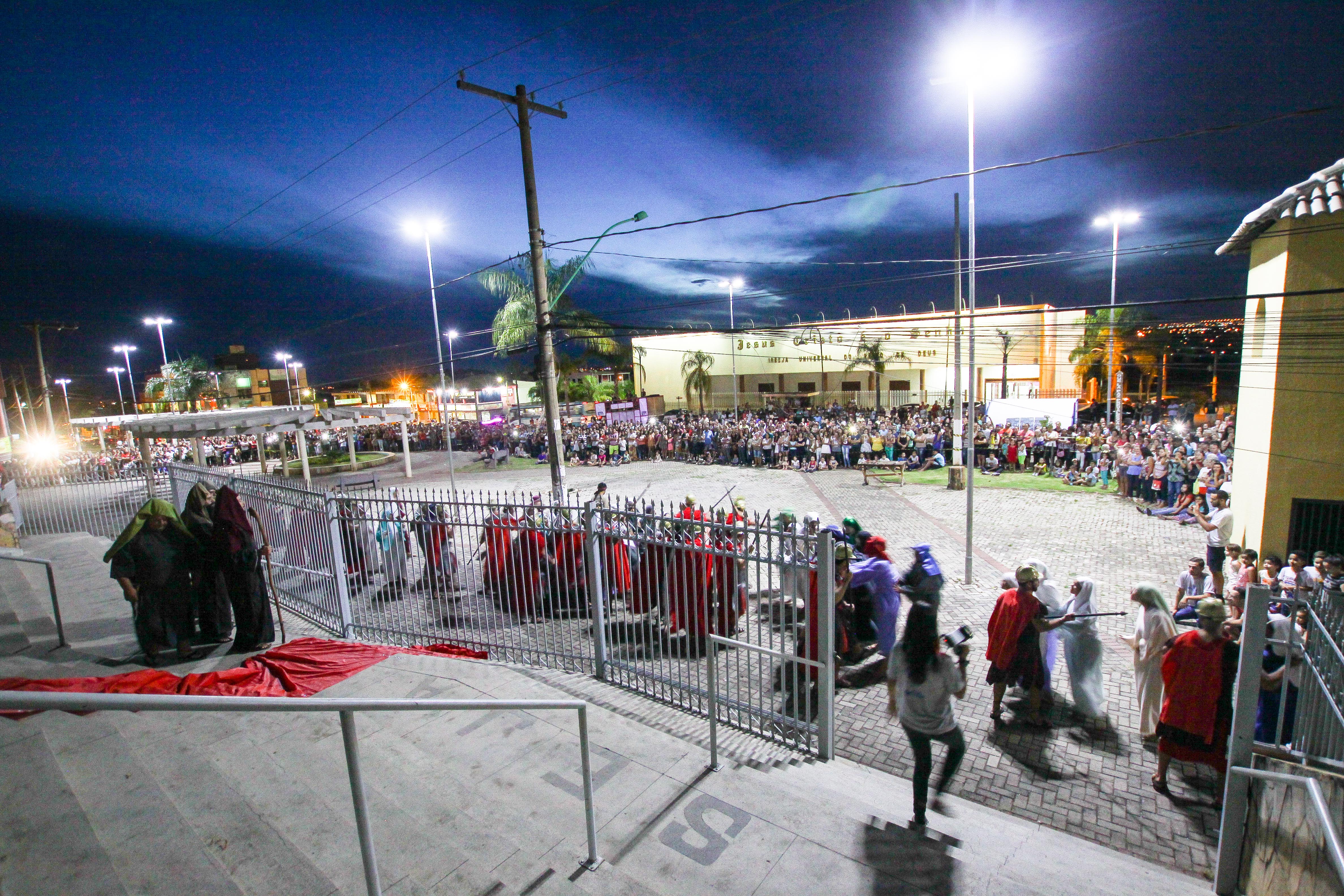 A páscoa é o ponto alto das liturgias Cristãs, ano após ano os fiéis rememoram o sacrifício da paixão, morte e ressurreição de Jesus. Entre os costumes religiosos encontra-se a encenação da Via Sacra e o tempo oportuno para congressos de louvor e adoração. Em Cidade Ocidental o feriado pascal, ocorrido entre os dias 14 a 16 de abril, foi marcado por dois grandes eventos religiosos que ofereceram aos moradores a oportunidade de religar-se com sua espiritualidade e em família viver os mistérios deste momento. Conexão Jovem O Congresso de Louvor e Adoração promovido pela Assembleia de Deus Ministério Madureira teve início na sexta-feira (14) e contou com a presença do Pr. Nelson Junior (Ministério Escolhi Esperar) e da cantora gospel Bekah Costa. No sábado (15) a ministração ficou a cargo do cantor e pregador Pr. Davi Passamani e no domingo o culto de celebração da páscoa reuniu uma multidão de fiéis para celebrar a ressurreição, durante os três dias de evento foram realizados quatro cultos que reuniram pessoas de toda a região. A estimativa é que mais de quatro mil pessoas passaram pelo Ginásio de Esportes Ayrton Sena neste grande evento religioso que contou com o apoio da Prefeitura Municipal. Via Sacra A encenação da paixão de Cristo é parte do imaginário dos brasileiros quando falamos de semana santa, em vários lugares do país este ato teatral arrasta multidões pelas ruas. Em Cidade Ocidental, a representação dos últimos minutos da vida de Jesus já tem lugar cativo na agenda das famílias na sexta-feira santa. Este ano a via sacra mobilizou mais de 130 pessoas que voluntariamente fizeram a encenação acontecer, eram jovens e adultos que com o apoio da Prefeitura Municipal ofertaram à população um espetáculo de fé e amor. Mais de cinco mil pessoas caminharam durante três horas relembrando estação a estação a agonia de Jesus. No sábado (15), os fiéis celebraram na Igreja Nossa Senhora de Fátima a Vigília Pascal e logo após aconteceu a encenação da ressurreição. O momento foi de muita alegria, fé e oração. Fortalecer a cultura e os eventos do município é uma responsabilidade nossa para que a população tenha alternativas de cultura, lazer e valorização das nossas tradições. Governo de Cidade Ocidental, trabalhando o presente, construindo o futuro! [caption id="attachment_733" align="alignnone" width="300"]