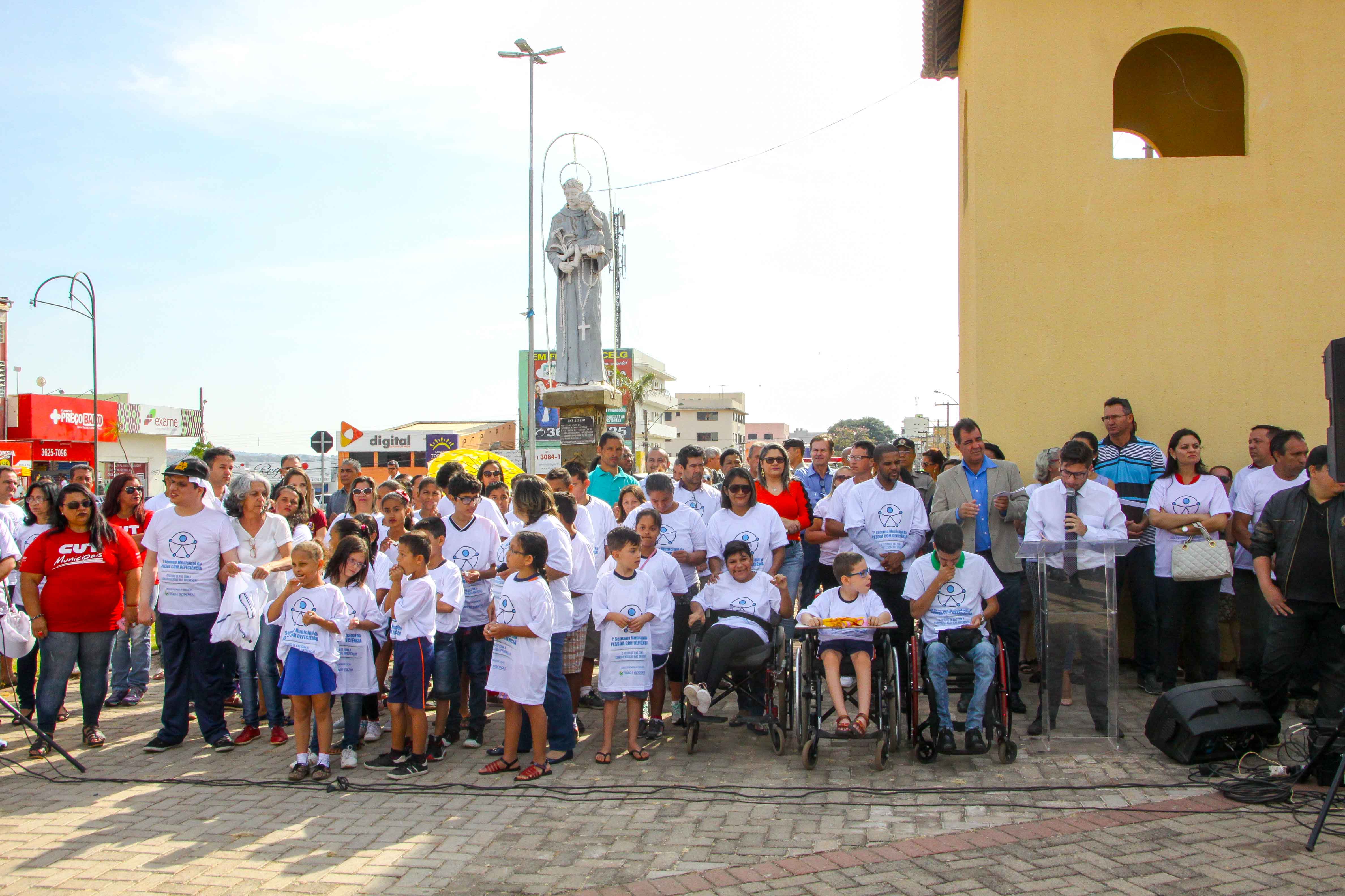 A manhã do dia 21 foi dedicada ao apoio às pessoas com deficiência em Cidade Ocidental. Iniciando as ações da 1 Semana da Pessoa com Deficiência, o prefeito Fábio Correa realizou a tradicional hora civica na Praça Santo Antônio, com a presença de alunos da rede municipal e particular de ensino, além de autoridades e populares. O objetivo do governo com esta ação é trazer para o centro das discussões a necessidade do apoio às pessoas com deficiência. Dentre as principais metas do Governo, estão a melhoria da acessibilidade em toda a cidade, bem como auxílio social às famílias de pessoas com necessidades especiais. “Precisamos ajudar as famílias a cuidar dos seus parentes que possuem necessidades especiais”, acredita o prefeito, que anunciou ainda a construção do Cmaee (Centro Municipal de Atendimento Educacional Especializado) local que pretende ser referência em toda a região no apoio ao portador de necessidades especiais. “Incluir é fazer todo para criar ações diárias para fazer acontecer”, disse Fábio Correa. Para isso o Governo conta com uma programação específica para conscientizar e criar ações práticas em torno do tema. A primeira ação foi uma caminhada que partiu da Praça Santo Antônio em direção à Feira Coberta do município, logo após a solenidade de abertura. Alunos, autoridades e populares acompanharam o prefeito no trajeto. Na chegada houve apresentações da Banda Marcial Paulo Freire. Para os próximos dias estão programados o 1 Simpósio Municipal da Pessoa com Deficiência, no auditório da Secretaria de Educação e ainda uma partida amistosa de basquete adaptado para cadeirantes, no Ginásio de Esportes. O Poder Legislativo organizará uma sessão solene voltada ao tema e a semana finaliza com a apresentação das salas sensoriais, um espaço onde pessoas sem deficiência podem experimentar as limitações e dificuldades dos portadores de necessidades especiais. ATENÇÃO PARA A PROGRAMAÇÃO: *Segunda-Feira - Caminhada em favor da Acessibilidade e Hora Cívica na feira coberta. Concentração: Praça Santo Antônio. - 09hs. *Terça-Feira - Simpósio sobre Pessoas com Deficiências. Local: Auditório da Secretaria de Educação - 08hs. *Quarta-Feira - Jogo de Basquete em cadeiras de rodas. Local: Ginásio de Esportes Lindolfo Lima de Cidade Ocidental. 08hs. *Quinta-Feira - Sessão Solene na Câmara de Vereadores de Cidade Ocidental. - 09hs. Sexta-Feira - Salas Sensoriais - CMAEE – 08hs.