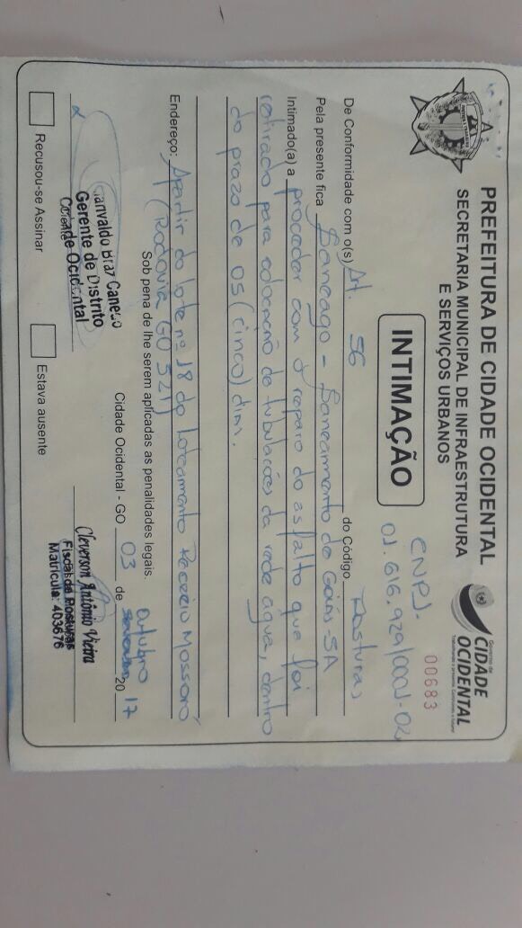 No primeiro semestre do corrente ano a SANEAGO contratou uma empresa afim de terceirizar o serviço de ampliação da rede de captação de água no bairro Recreio Mossoró. O contrato previa o corte do asfalto, ampliação das tubulações e ao fim das obras a pavimentação da via pública. Recebemos recorrentes reclamações da população do bairro a respeito do buraco que ficou de legado desta obra e compreendemos os impactos que ele traz para a mobilidade e segurança dos moradores. Informamos que a Prefeitura Municipal não tem ingerência direta, nem responsabilidade no ocorrido. Todavia, temos empenhado todos os esforços para auxiliar na solução deste problema, acompanhando as medidas tomadas e cobrando celeridade das empresas responsáveis.