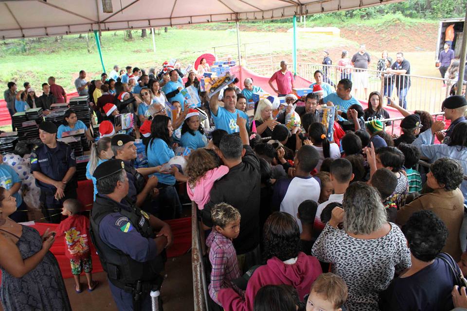 Para comemorar os 41 anos de Cidade Ocidental a Prefeitura organizou, em parceria importantes instituições, uma linda festa de aniversário que acolhesse a população, contasse a nossa história e trouxesse a tona os talentos, por vezes escondidos, que existem no município. Natal antecipado Aproveitando as festividades de aniversário a Prefeitura, em parceria com a OVG e com o Governo de Goiás, realizou o natal antecipado. Preparada especialmente para o público infantil, a atividade contou com distribuição de mais de cinco mil brinquedos e a tão esperada chegada do Papai Noel que pintou o sorriso no rosto das crianças e das famílias que ali se encontravam. A garotada recebeu carrinhos, bolas, tablet, estojo com kit para colorir e, mais do que rápido, a orla do lago transformou-se na terra dos sonhos dos pequenos que aguardam essa época do ano por toda magia que ela tem. [caption id="attachment_2797" align="alignnone" width="300"]