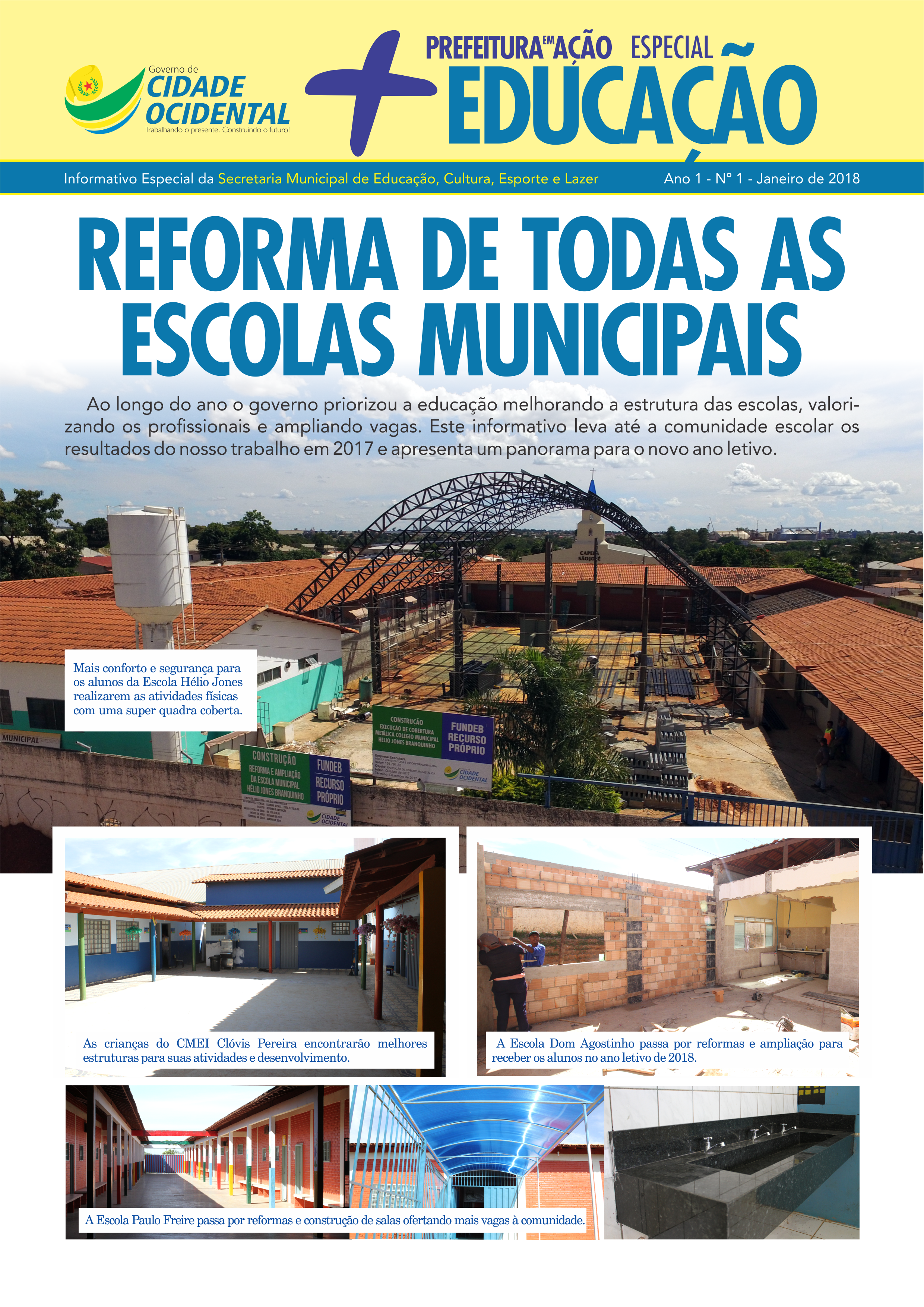 O informativo da Secretaria Municipal de Educação é um instrumento de diálogo direto com toda a comunidade escolar. Através dele pais, responsáveis, professores e alunos saberão as principais ações da Secretaria e os projetos que animam as Escolas e CMEI's. Junto com essa novidade anunciamos a periodicidade de informativos das demais Secretarias Municipais inaugurando um tempo de transparência e participação da comunidades nas atividades do Governo. Para conferir na íntegra o informativo nº 01/2018 acesse o link: jornal_educacao