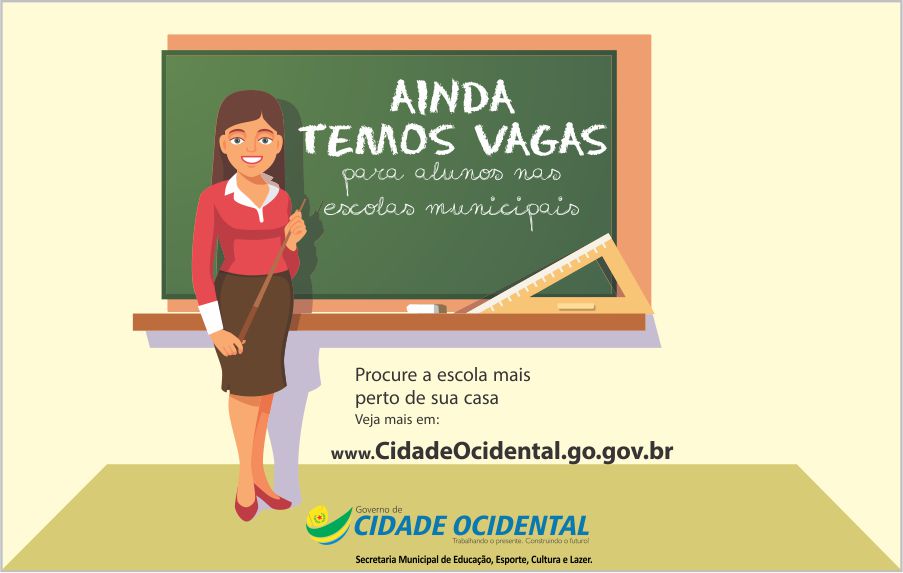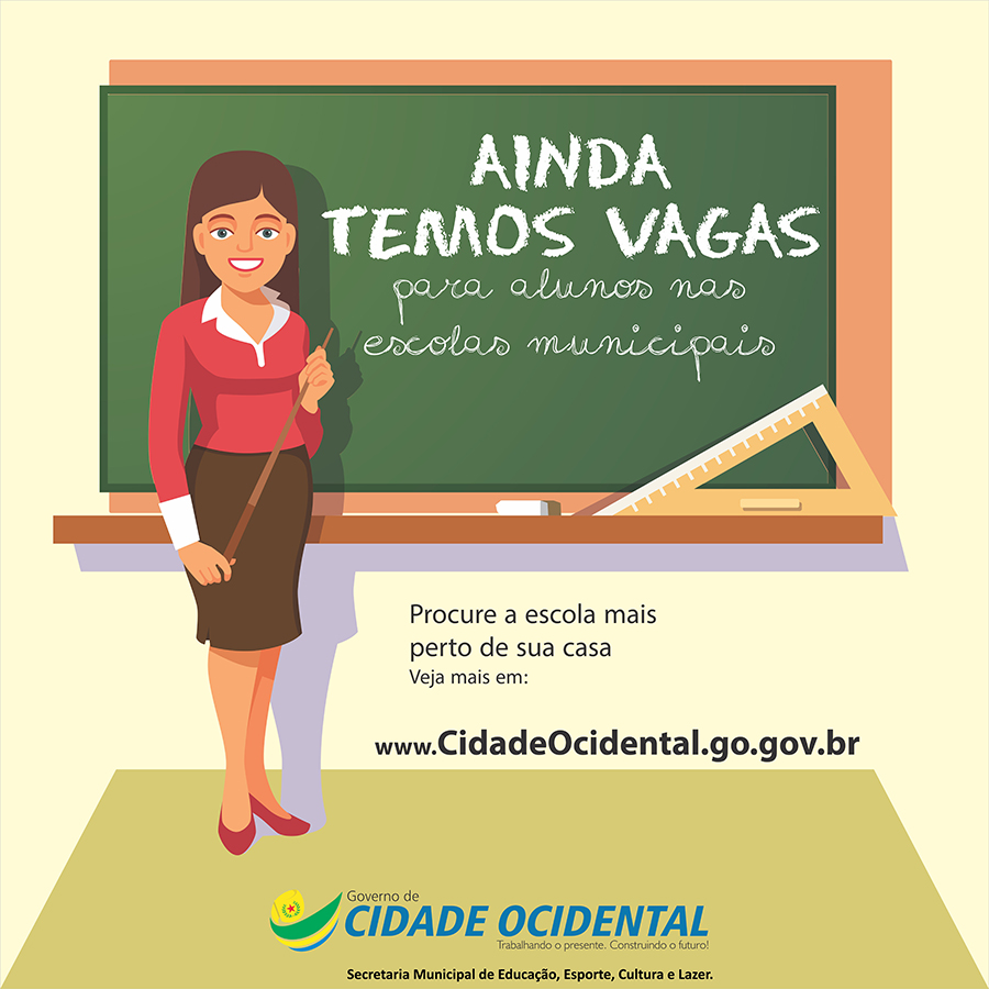 As Escolas Municipais ainda tem vagas disponíveis para a matrícula de alunos nas fases: ensino infantil, ensino fundamental e EJA. A orientação é que as matrículas sejam realizadas próximas ao domicílio para garantir a segurança e bom rendimento escolar das crianças e adolescentes. Escolas Municipais: Albino Batista Ferreira - QD 42, lotes K,L,M e N - Jardim ABC - (61) 3625 - 0945 Aleixo Pereira Braga I - Fazenda Mesquita - (61) 3509 - 1039 Frei Amilton Gomes Curado - Área Especial - Jardim ABC - (61) 3627 - 0703 Edson André de Aguiar - SQ 17, Área Especial n° 08 - (61) 3625 - 4521 Hélio Jones Branquinho - QD 27, Área Especial - Parque Napolis - (61) 3605 - 4116 José Fernandes da Silva Neto - SQ 13, Área Especial - (61) 3903 - 2031 Professora Josefa Maria de Lima - QD "A", LT 08 - Setor de Mansões Suleste - (61) 3903 - 2066 Multigraduada Professor Nicandro Hosano Batista - Fazendo Garapa - (61) 99947 - 9381 Nova Friburgo - Área Especial S/N° - Parque Nova Friburgo - (61) 3903 - 2034 Paulo Freire - Área Especial n° 05 QD 12 - Ocidental Park - (61) 3625 - 1600 Severiano Pereira Braga - Praça entre as ruas 06 e 09 - Parque Nova Friburgo B - (61) 3625 - 1248 Severino Teotônio da Costa - SQ 47, Área Institucional III - Parque Araguari - (61) 3605 - 2228 Dom Agostinho Stefan Januszewicz - SQ 19 QD 2, Área Especial - (61) 3605 - 3275 Centros Municipais de Educação Infantil: Benedito Antônio - SQ47, Área Institucional III - Parque Araguari - (61) 3605 - 1348 Clóvis Pereira Fernandes - QD 13, Área Institucional VI - Ocidental Park - (61) 3605 - 1391 Criança Esperança - SQ 10, Área Especial - Centro - (61) 3605 - 1278 Heraldo Tavares Carvalho - QD 05 LT 62 - Parque Nova Friburgo - (61) 3605 - 1407 Juscélia Pereira Batista - SQ 19 QD 20 , Área Especial - (61) 3605 - 3452 Centro Interescolar de Línguas de Cidade Ocidental - CILCO - Rua Jacob, LT 50 - Setor de Mansões Suleste - (61) 3625 - 1791 Centro Municipal de Atendimento Educacional Especializado - CMAEE - Rua Jacob, LT 88 - Setor de Mansões Suleste - (61) 3605 - 5335