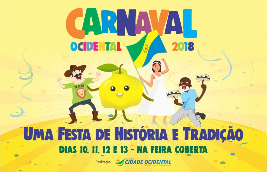 O Carnaval é a maior festa de rua do mundo e expressa toda a diversidade, alegria e criatividade do povo brasileiro. Em Cidade Ocidental temos uma história de blocos que arrastam os foliões pelas ruas ao som de muita música e descontração, para resgatar esta história o governo empreendeu esforços na realização de uma festa bem estruturada e com foco total na segurança, a exemplo do ano passado quando a folia aconteceu sem nenhuma queixa ou ocorrência.