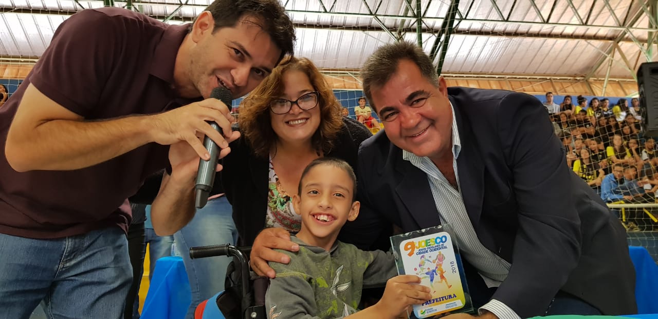 O pequeno Davi, de 10 anos, foi a criança escolhida para entregar a placa comemorativa do Joesco ao prefeito. O menino é estudante do 5º ano e teve paralisia cerebral, mas mantém as funções cognitivas preservadas. Ao entregar a placa, o menino disse ao prefeito que era estudante da Escola Municipal Silva Neto e do CEMAE (Centro Municipal de Atendimento Educacional Especializado), no qual tem acompanhamento há quatro anos.