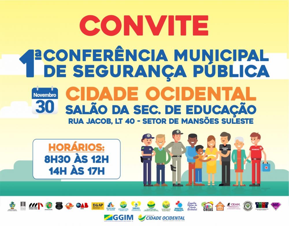 Programe-se. A última Conferência de Segurança Pública acontece nesta sexta-feira, dia 30 de novembro. A participação de todos os setores da sociedade é de extrema importância para todos os projetos de enfrentamento à criminalidade e pela melhoria da segurança em nosso município. Vamos juntos lutar por dias melhores em nossa Cidade Ocidental. As inscrições se encerram no dia 29 de novembro às 18 horas.
