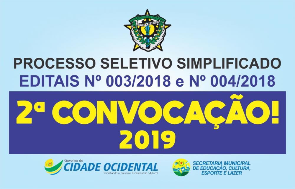 Convocamos os aprovados no Processo Seletivo Simplificado, referentes aos editais no 003/2018 e 004/2018 (lista em ordem classificatória abaixo), para comparecerem no endereço abaixo descrito, no dia e horário citado, para tratarem de assuntos relativos à sua contratação, resultante do Processo Seletivo Simplificado da Secretaria Municipal de Educação, e participarem de uma reunião apresentando os documentos nominados.