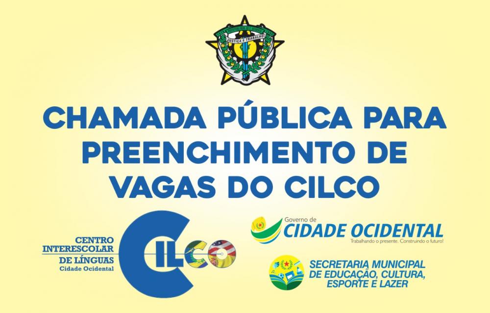 O municipio de Cidade Ocidental, por meio da Secretaria Municipal de Educação, divulga a Chamada Pública de preenchimento de vagas do Centro Integrado de Línguas de Cidade Ocidental - CILCO para a comunidade, conforme termos definidos neste instrumento. O incio das matriculas dar-se a partir do dia 01 de fevereiro até 04 de fevereiro.