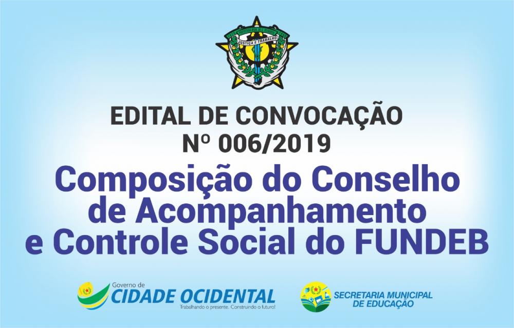 Edital n° 006/2019 de convocação para composição do Conselho de acompanhamento e controle social do FUNDEB