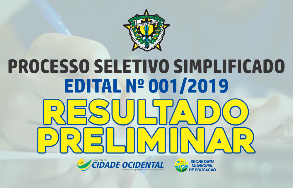 Resultado Preliminar do Processo Seletivo Simplificado - EDITAL Nº 001/2019