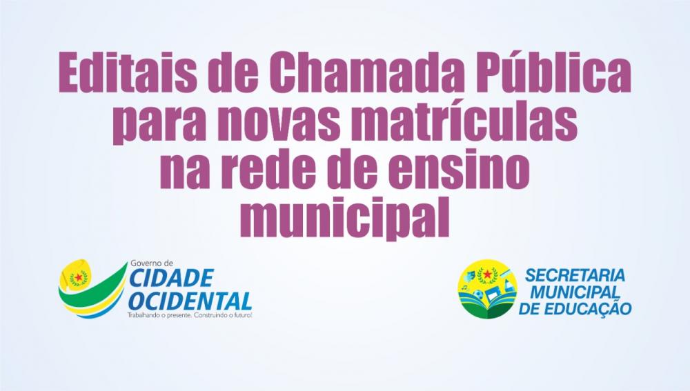 A Secretaria Municipal de Educação torna públicos os Editais de Chamada Pública para matrículas novas na Rede Municipal de Ensino de Cidade Ocidental/GO para o ano de 2020.