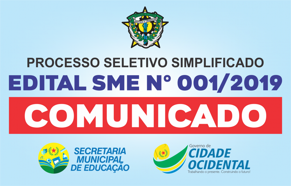 PROCESSO SELETIVO SIMPLIFICADO - EDITAL SME Nº 001/2019 - COMUNICADO