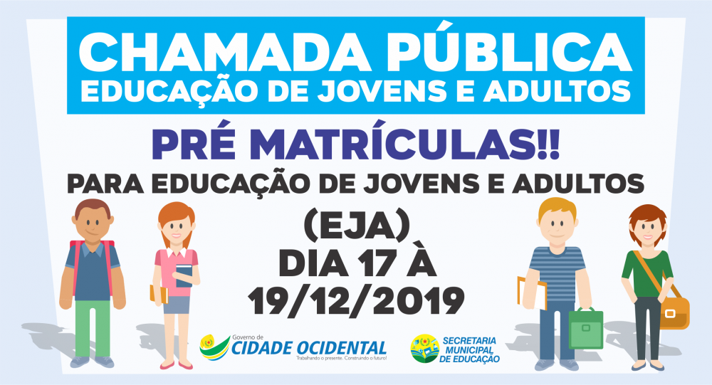 Chamada Pública para Educação de Jovens e Adultos. Pré Matrículas. De 17 à 19 de dezembro de 2019.