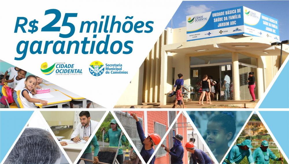 No caso de Cidade Ocidental, a atual gestão conseguiu garantir um volume inédito de recursos para tocar obras e atividades em prol do município. O valor de R$ 25,2 milhões para as áreas prioritárias da Administração. Somente no ano de 2019, foram mais de R$ 12,3 milhões de reais assegurados para as áreas da Saúde (R$ 5,7 milhões), Educação (R$ 5,2 milhões), Segurança Pública (R$ 850 mil), Cultura (R$ 300 mil) e Geração de Emprego e Renda (R$ 200 mil).