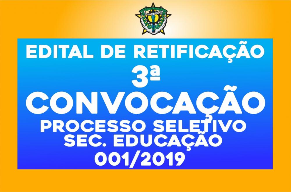 Clique aqui e confira o edital de retificação da 3° CONVOCAÇÃO DO PROCESSO SELETIVO DA SECRETARIA MUNICIPAL DE EDUCAÇÃO