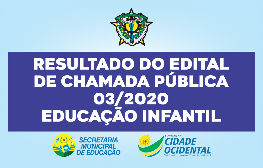 Chamada para efetivação de matrícula da educação infantil no Centro Municipal de Educação Infantil Benedito Antônio - Extensão e no Centro Municipal de Educação Infantil Jorge Miguel Laquis - Cidade Ocidental-GO - Ano Letivo de 2020