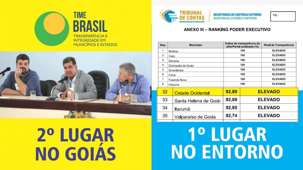 As medidas de transparência adotadas pela Cidade Ocidental desde 2017 foram reconhecidas pelo terceiro ano consecutivo. Atualmente, segundo o Tribunal de Contas dos Municípios (TCM), o município está em primeiro lugar no ranking dos mais transparentes do Entorno de Brasília.