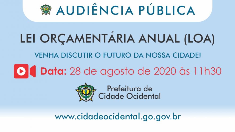 Fiquem atentos e participem da Audiência Pública para a elaboração da Lei Orçamentária Anual (LOA) para o exercício de 2021.