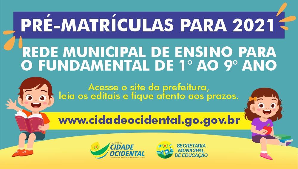 Está aberta a pré-matrícula para alunos da Rede Municipal para o Fundamental do 1° ao 9° ano para 2021.