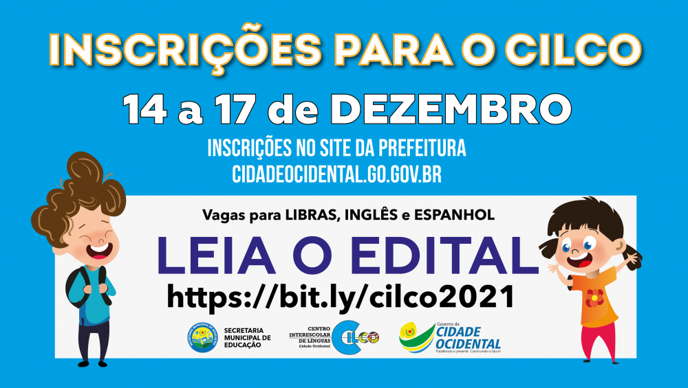 Inscrições no site da prefeitura www.cidadeocidental.go.gov.br