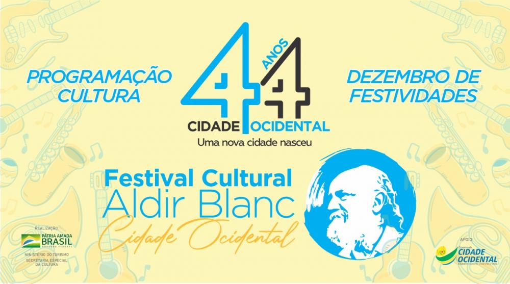 Nesta terça-feira (15) o município de Cidade Ocidental completa 44 anos. Em homenagem, o Governo Municipal realizará eventos comemorativos dentro do Festival Cultural Aldir Blanc. Essa programação será realizada na orla do Lago Jacob, Jardim ABC e demais bairros da cidade até o final de dezembro.