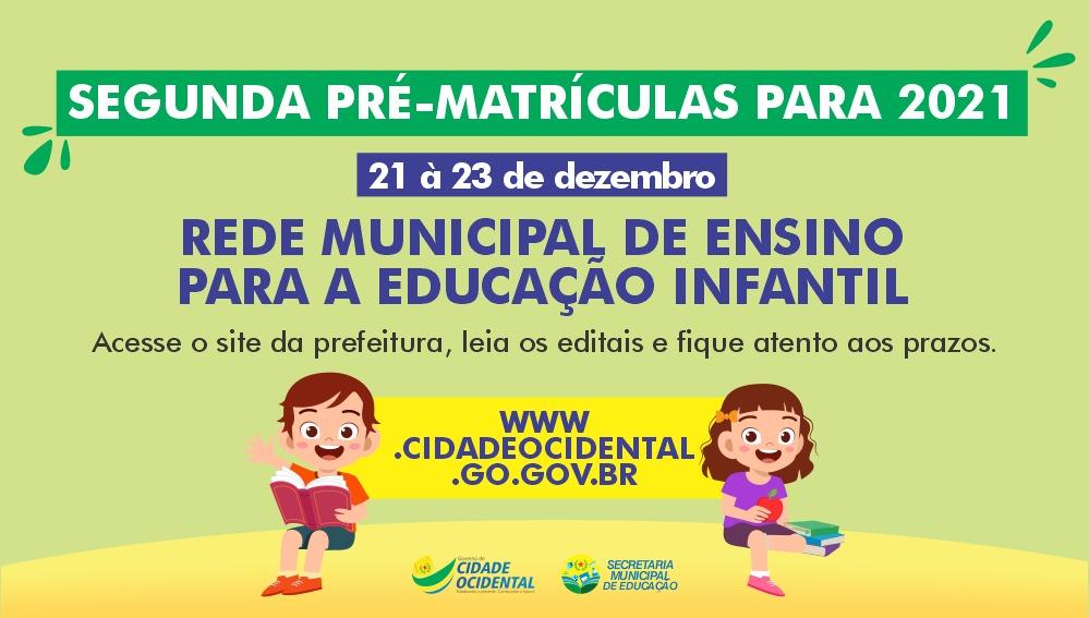 Está aberta a segunda pré-matrícula para alunos da educação infantil para o ano letivo de 2021.