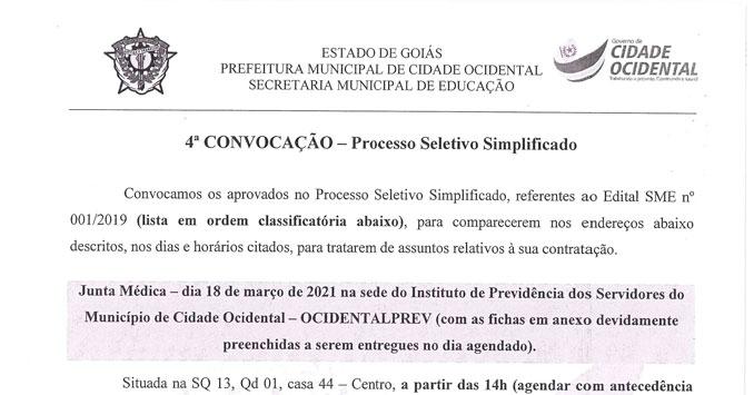 4ª convocação do processo seletivo simplificado - SME