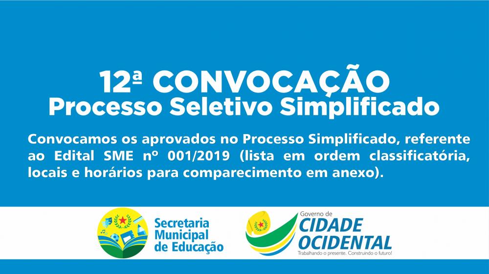 12ª CONVOCAÇÃO PROCESSO SELETIVO 001/2019
